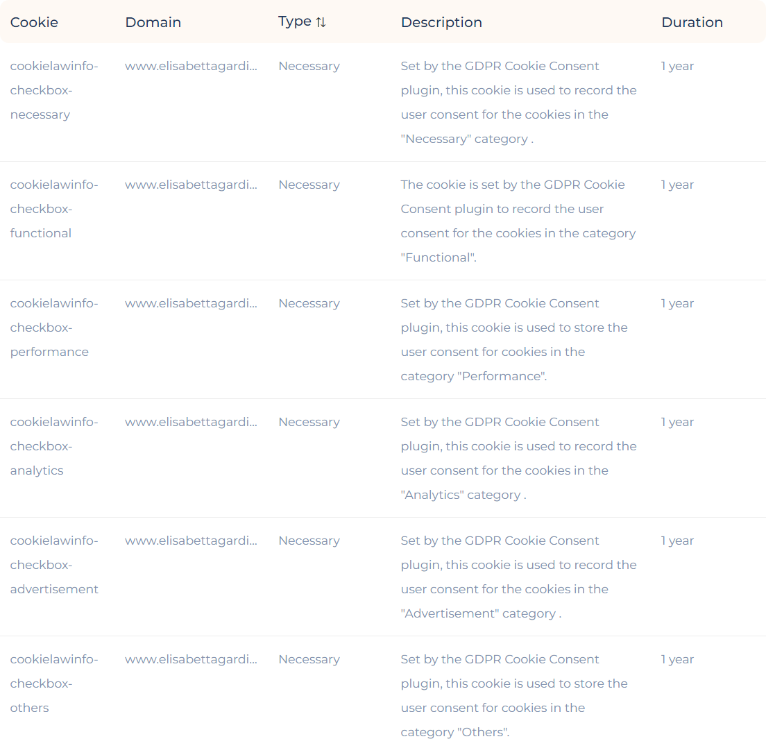 Di seguito i cookies tecnici in uso con la piattaforma WordPress, plugin, widget e analitici.