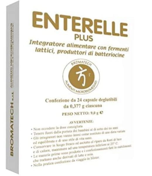 - Integratore alimentare con fermenti lattici, produttori di batteriocine. I fermenti lattici favoriscono l’equilibrio della flora intestinale.