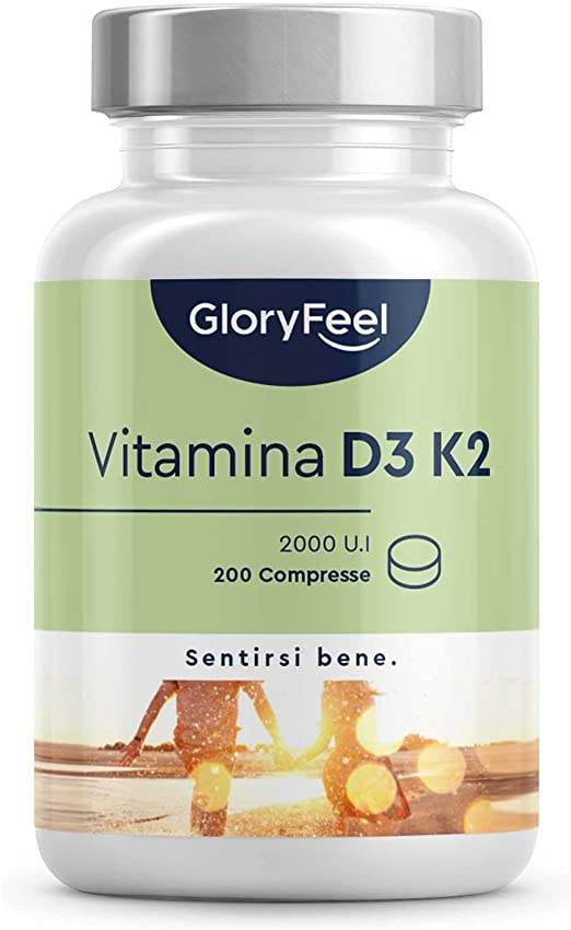 VITAMINA D3 2000 UI + VITAMINA K2 MK-7 100 µg – Compresse di vitamina D3 + K2 con 2000 UI (50 µg) di vitamin D3 colecalciferolo e 100 µg di vitamina K2 MK-7 per compressa. La nostra vitamina K2 compresse con struttura 99% all-trans deriva da oli di fiori da sintesi organica.